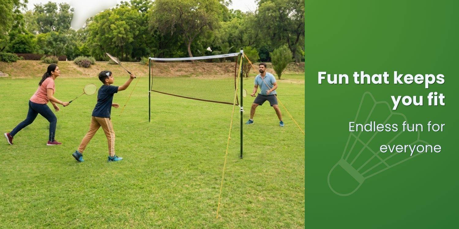 Adjustable Height NetSettle Cork Bat SetBadminton Net Set Portable Adjustable Outdoor with Foldable Stand Pole5.1M Badminton Net with Foldable Stand Poles & Carry Bag for Outdoor Shop by Category Net with Stand Court Lines Badminton Poles Badminton Nets Portable Courts Volleyball Court Lines Why Choose FunBadmenton? Big Official Size Net Official size net ensures proper badminton play, suitable for both kids and adults. No Digging Required Unlike traditional poles, no digging needed, so set up net in minutes Portable & Lightweight Super stable, lightweight and durable. Set Up Your Own Court Turn any open space into a badminton court in minutes. Customer Favorites Official size net ensures proper badminton play, suitable for both kids and adults. 85for website7 Sale! Add to cart Badminton Court Lines Doubles Boundary Line (Yellow) ₹7,000.00 Original price was: ₹7,000.00.₹3,299.00Current price is: ₹3,299.00. Add to cart Sale! Add to cart Badminton Net with Stand Portable Badminton Net with Carry Bag (White Poles) ₹7,000.00 Original price was: ₹7,000.00.₹3,499.00Current price is: ₹3,499.00. Add to cart Sale! Add to cart Badminton Net with Stand Portable Badminton Net (White Poles) ₹7,000.00 Original price was: ₹7,000.00.₹3,200.00Current price is: ₹3,200.00. Add to cart Sale! Add to cart Badminton Net with Stand Portable Badminton Net (Black Poles) ₹7,000.00 Original price was: ₹7,000.00.₹3,200.00Current price is: ₹3,200.00. Add to cart Also Available on Amazon & Flipkart. Buy on Amazon Buy on Flipkart